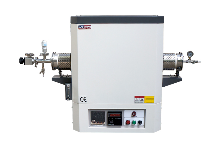 爐管兩端裝有不銹鋼金屬法蘭,配套高溫 PTFE 墊圈,可在真空下進(jìn)行工作, 真空度≤5pa(旋片式真空泵)